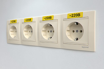 Наклейки для маркировки розеток желтого цвета «~220В», лист 50 шт.