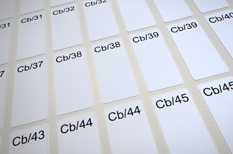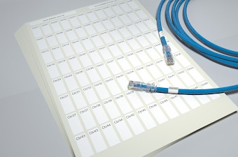 Кабельные стикеры предназначены для маркировки провода диаметра 3-6 мм и площадью сечения до 28 мм2. Изготовлены из белого полиэстера, размер наклеек ДхВ 13х30 мм, толщина 200 мкм, поверхность матовая. На листе формата А4 находится 96 наклеек. Наклейки поставляются в подрезанном виде, что облегчает и ускоряет их извлечение с листа. Монтаж стикеров возможно в виде, обвивающем кабель, а на проводах с небольшим диаметром, где сечение провода не позволяет нанести читабельную запись, можно использовать наклейку как флажок.