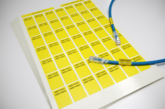 Кабельные наклейки жёлтого цвета для маркировки кабеля диаметром до 7мм, под печать лазерным принтером