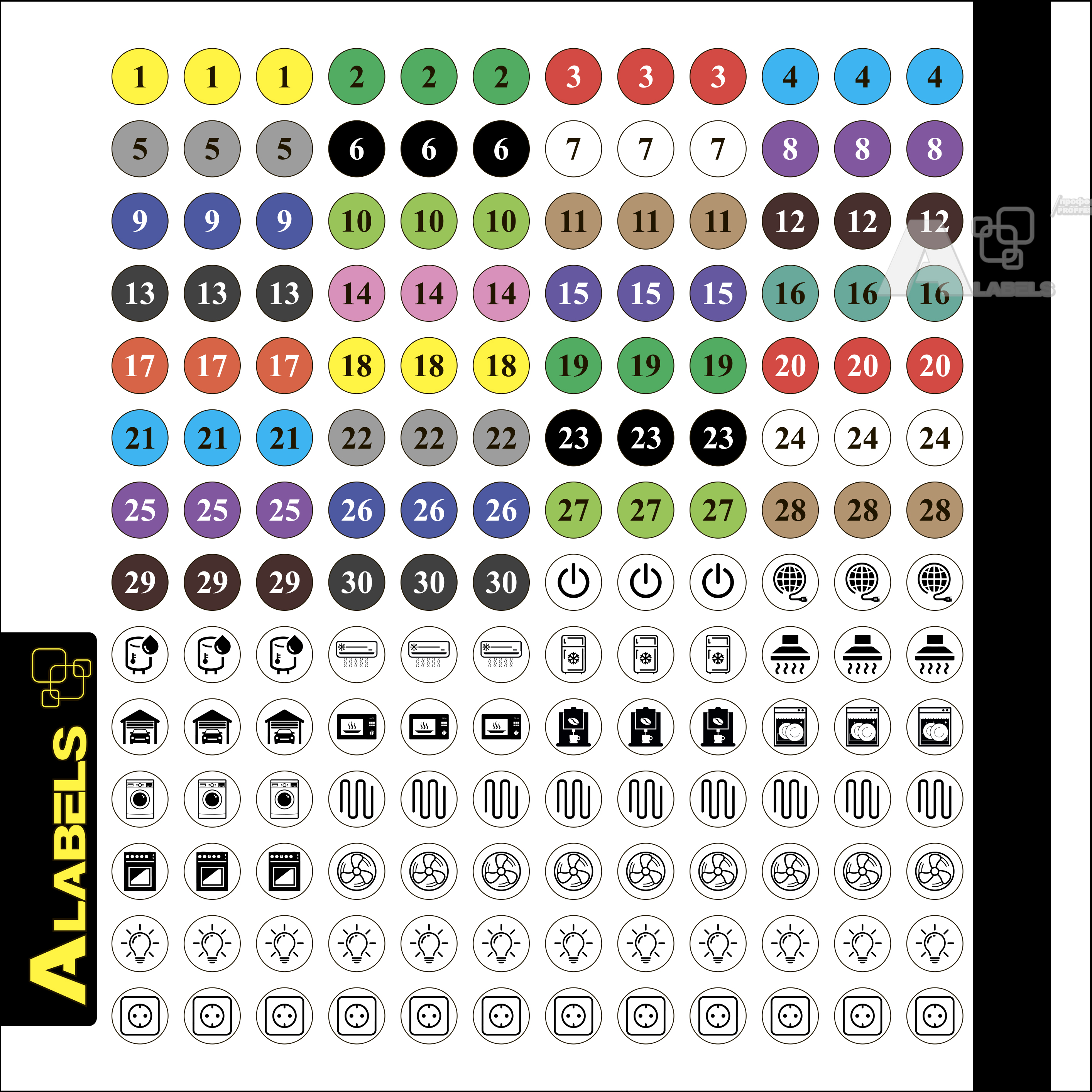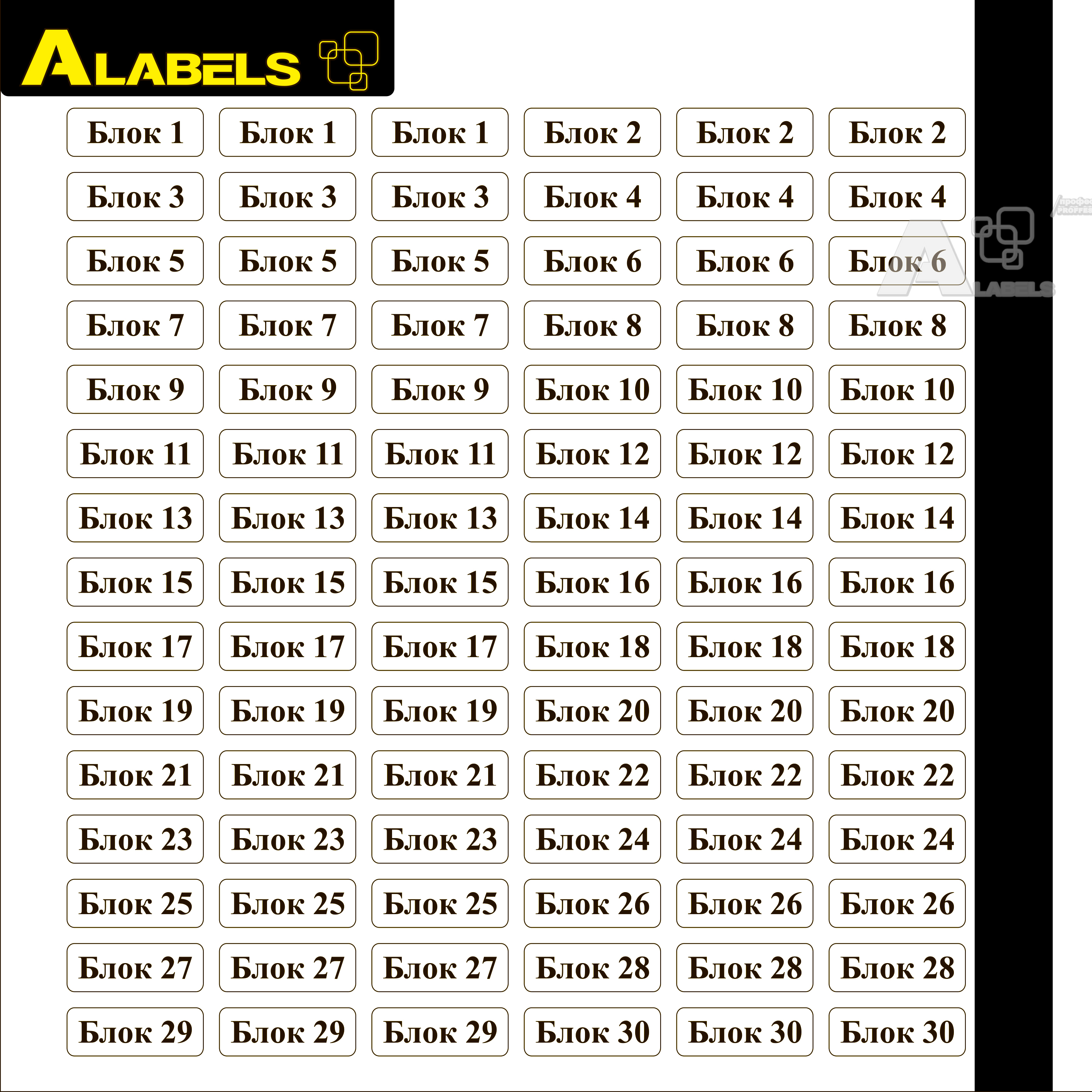 3 - наклейки на прозрачной основе с надписями "Блок 1...30" для маркировки блоков розеток и соответствующих им автоматов