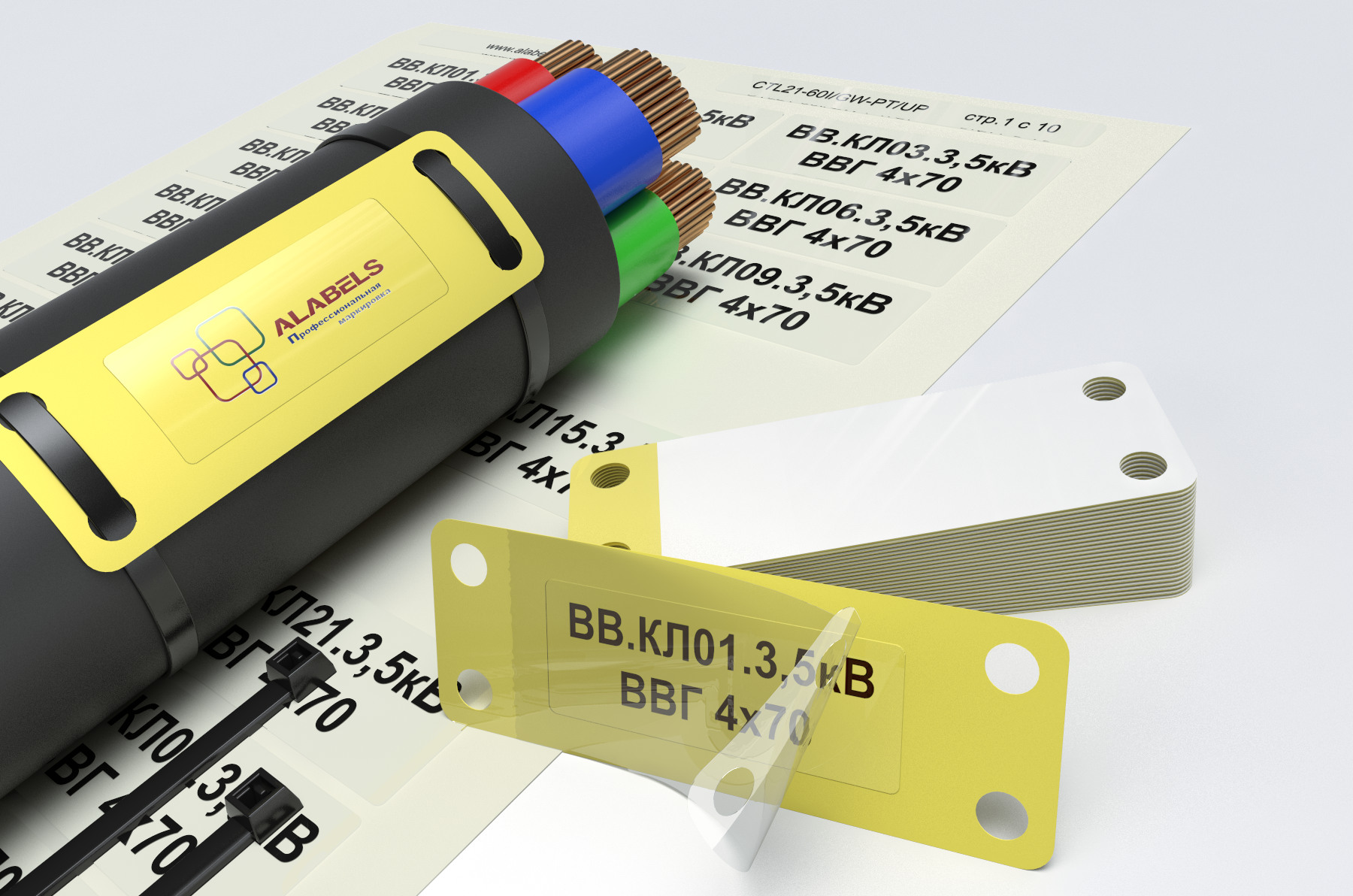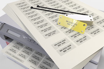 Наклейка для нанесения надписи с помощью лазерного принтера и последующим вклеиванием в кабельную бирку размером от 25х70 мм.