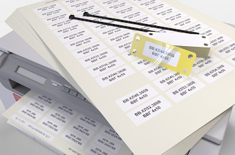 Наклейка для нанесения надписи с помощью лазерного принтера и послудующим вклеиванием в кабельную бирку размером от 70х25 мм.