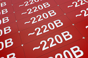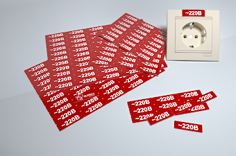 Наклейки для маркировки розеток «~220B» - пластиковые, красные