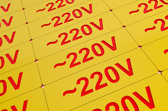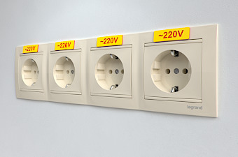 Наклейки на розетки «220В» производятся из двухслойного пластика c матовой поверхностью. Верхний слой желтый, нижний - красный. Поскольку надпись на наклейке гравируется – удаляется верхний слой пластика на месте надписи, таким образом надпись 220В получается вдавленной и красного цвета. С противоположной, до надписи, стороны наклейки используется двухсторонний скотч c качественным долговечным адгезивном, который подходит для приклеивания даже к низкоэнергетическим поверхностям. Пластиковые наклейки - рекомендуется использовать при маркировке розеток на стенах или поверхностях с неоднородной структурой, а также на самих розетках. Размер наклейки на розетки «220В» (ВхШ) 11х35мм подобран с учетом приклеивания на рамку розетки большинства производителей, а также возможно приклеивания на окрашенные стены, стены покрытые порошковыми красками, обои.