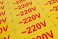 Наклейки для маркировки розеток «~220B» - пластиковые, желтые