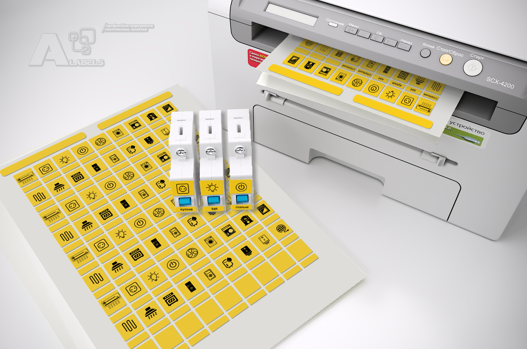Наклейки под печать на лазерном принтере для маркировки силовых автоматов в 1 U