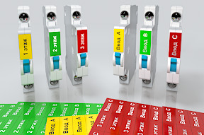 Комплект пластиковых наклеек для маркировки силовых автоматов размером в 1 юнита с надписью от Заказчика