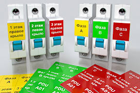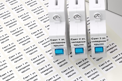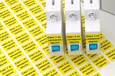 Комплект пластиковых наклеек для маркировки силовых автоматов размером в 3 юнита с надписью от Заказчика
