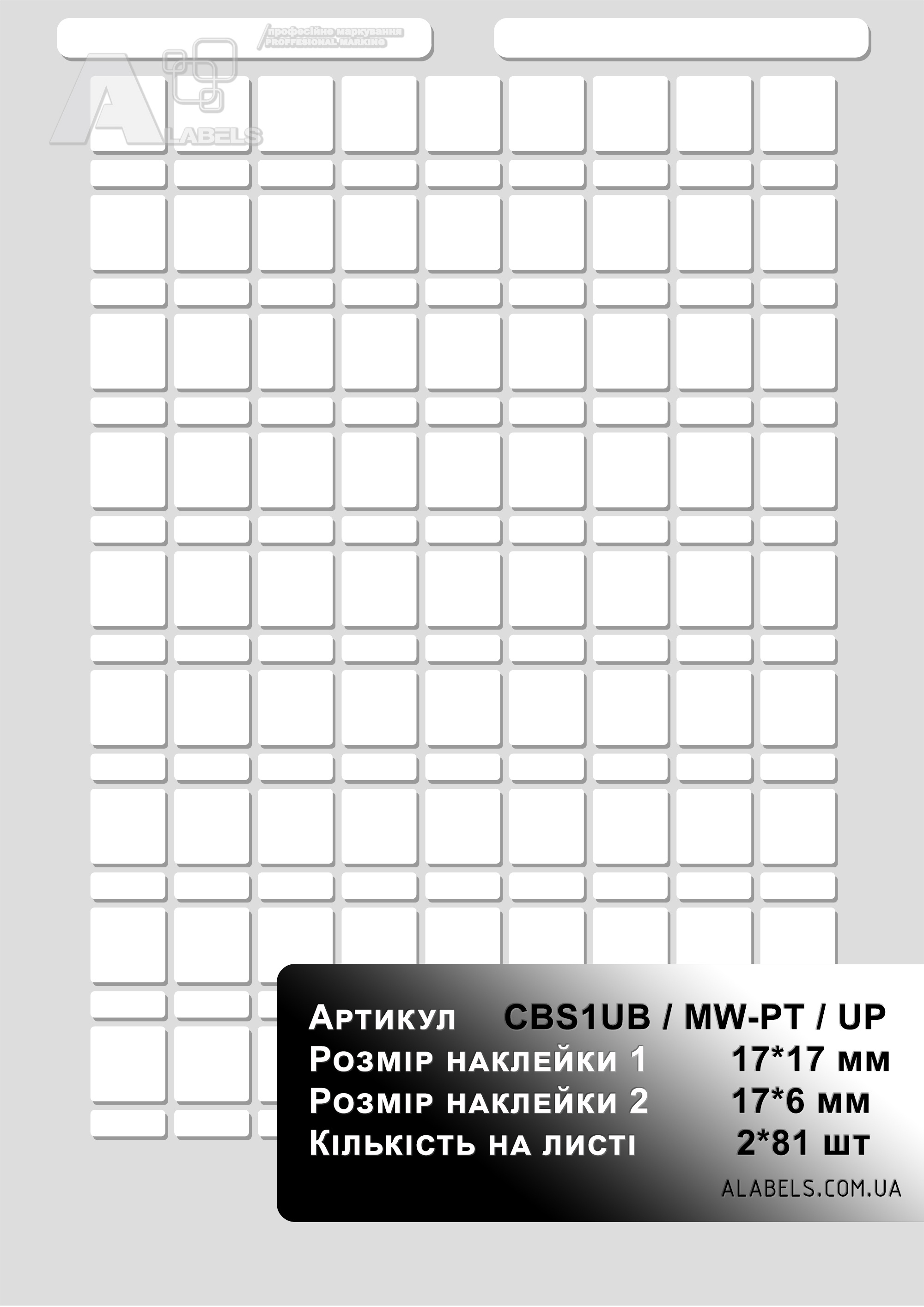 Размеры(в x д): 17мм x 17мм Область для надписи 15мм x 15мм Формат листа: А4 Количество на листе 130 Материал: Полиестер Форма: Прямоугольник Цвет фона: Белый Цвет надписи: Зависит от принтера -