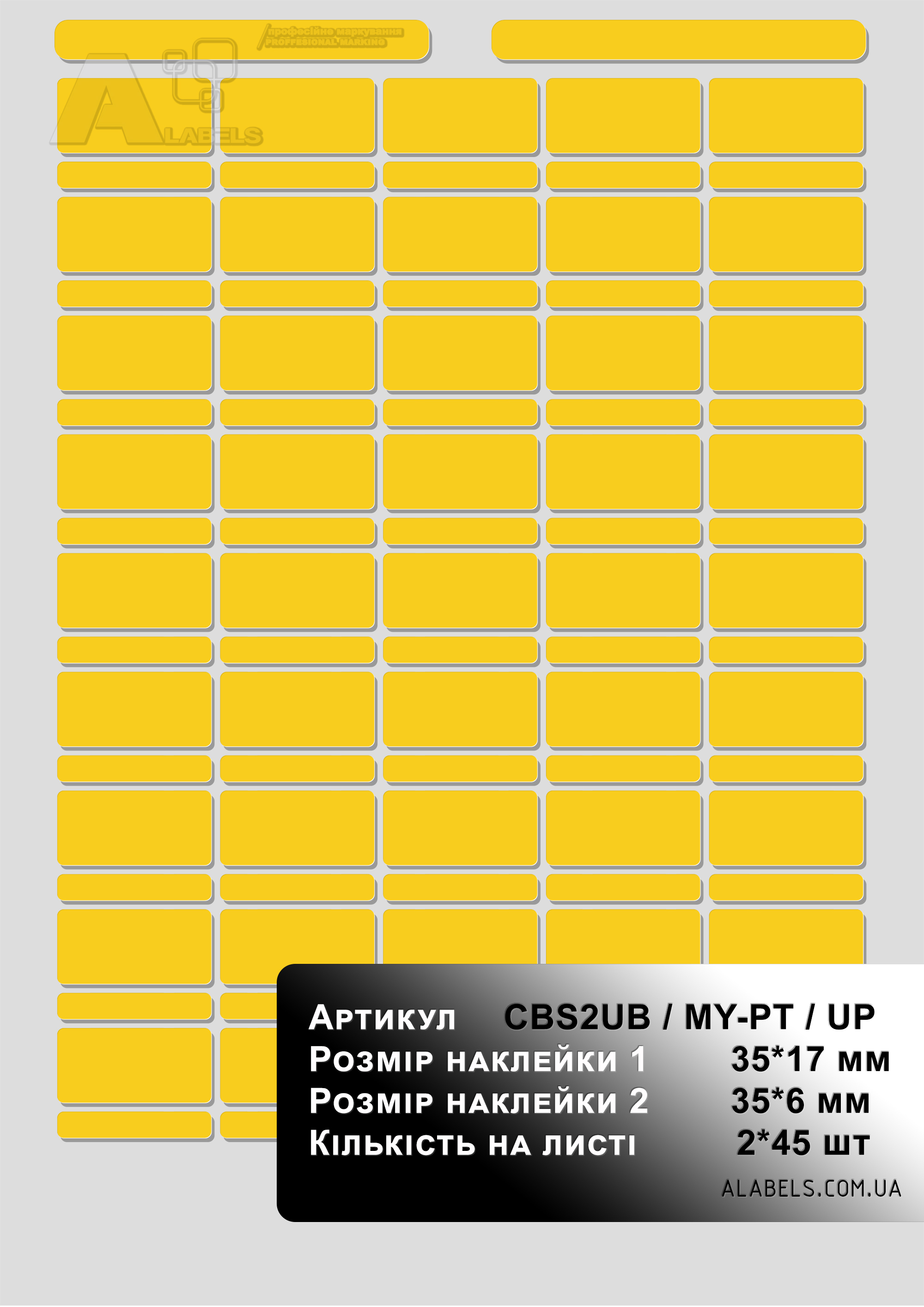 Наклейки желтые для маркировки силовых автоматов в 2U из полиэстера для печати на лазерном принтере