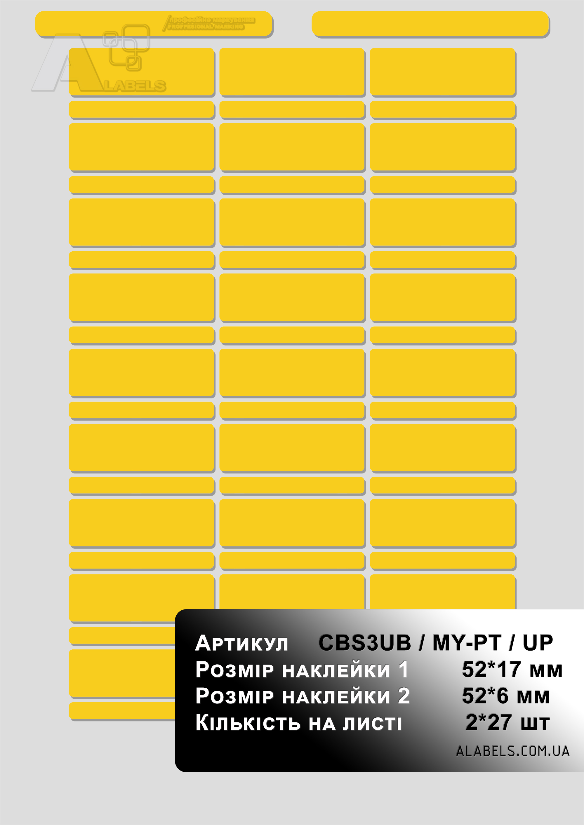 Наклейки желтые под печать на лазерном принтере для маркировки силовых автоматов в 3 U