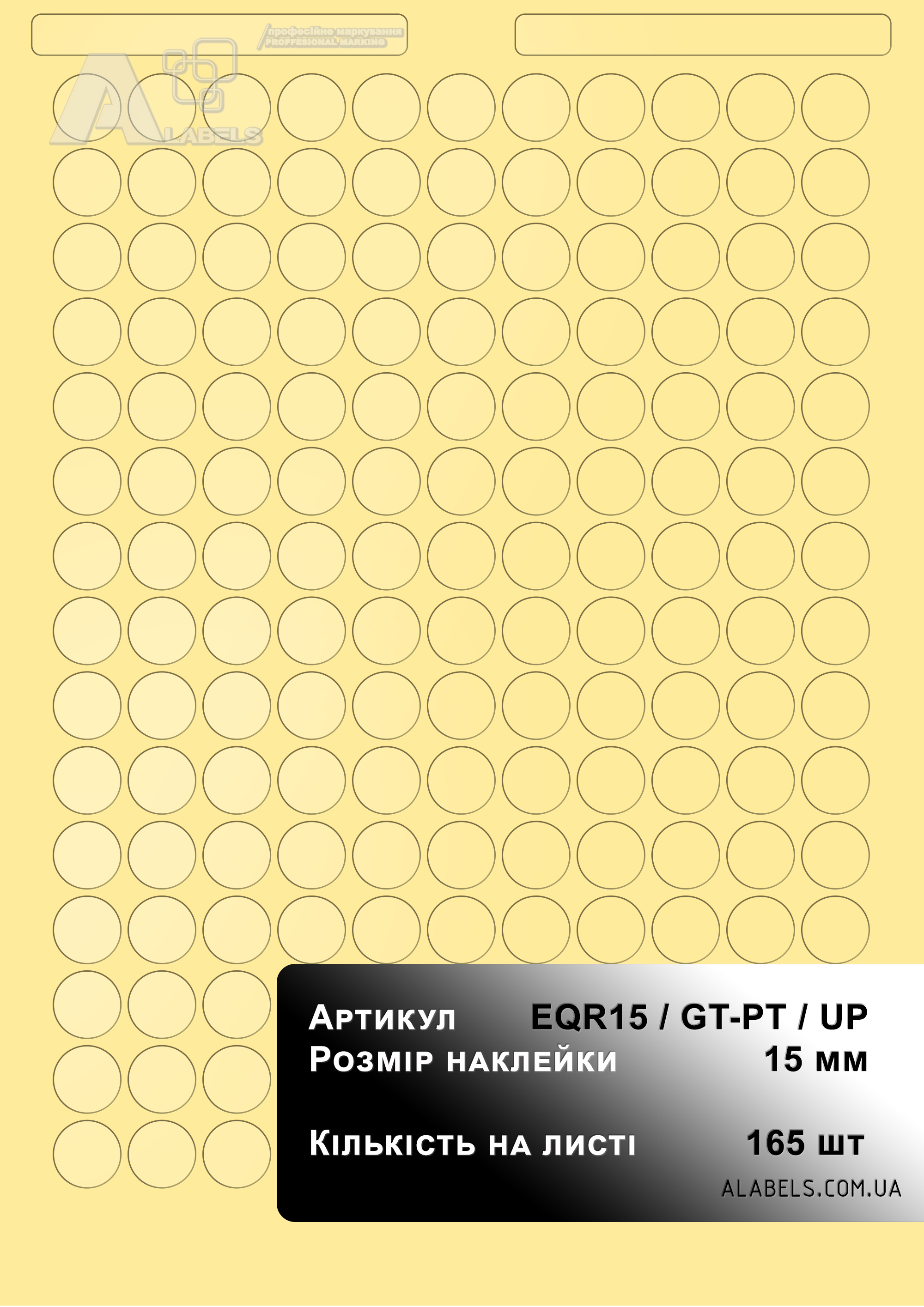 Размеры(в x д): 15мм x 15мм Область для надписи 0мм x 0мм Формат листа: А4 Количество на листе 165 Материал: Винил Форма: Круг Цвет фона: Прозрачный Цвет надписи: -