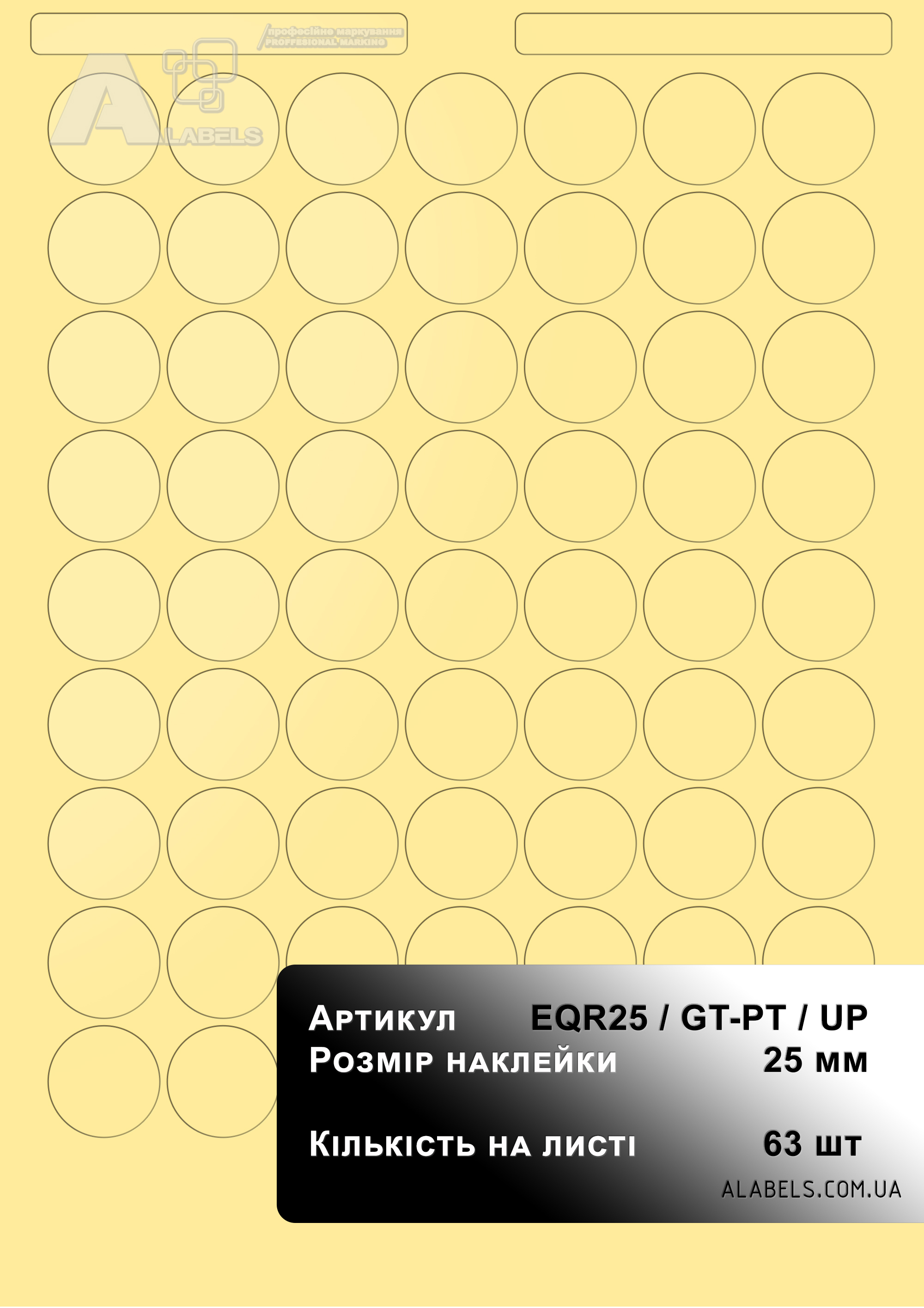 Размеры(в x д): 25мм x 25мм Область для надписи 0мм x 0мм Формат листа: А4 Количество на листе 63 Материал: Винил Форма: Круг Цвет фона: Прозрачный Цвет надписи: -