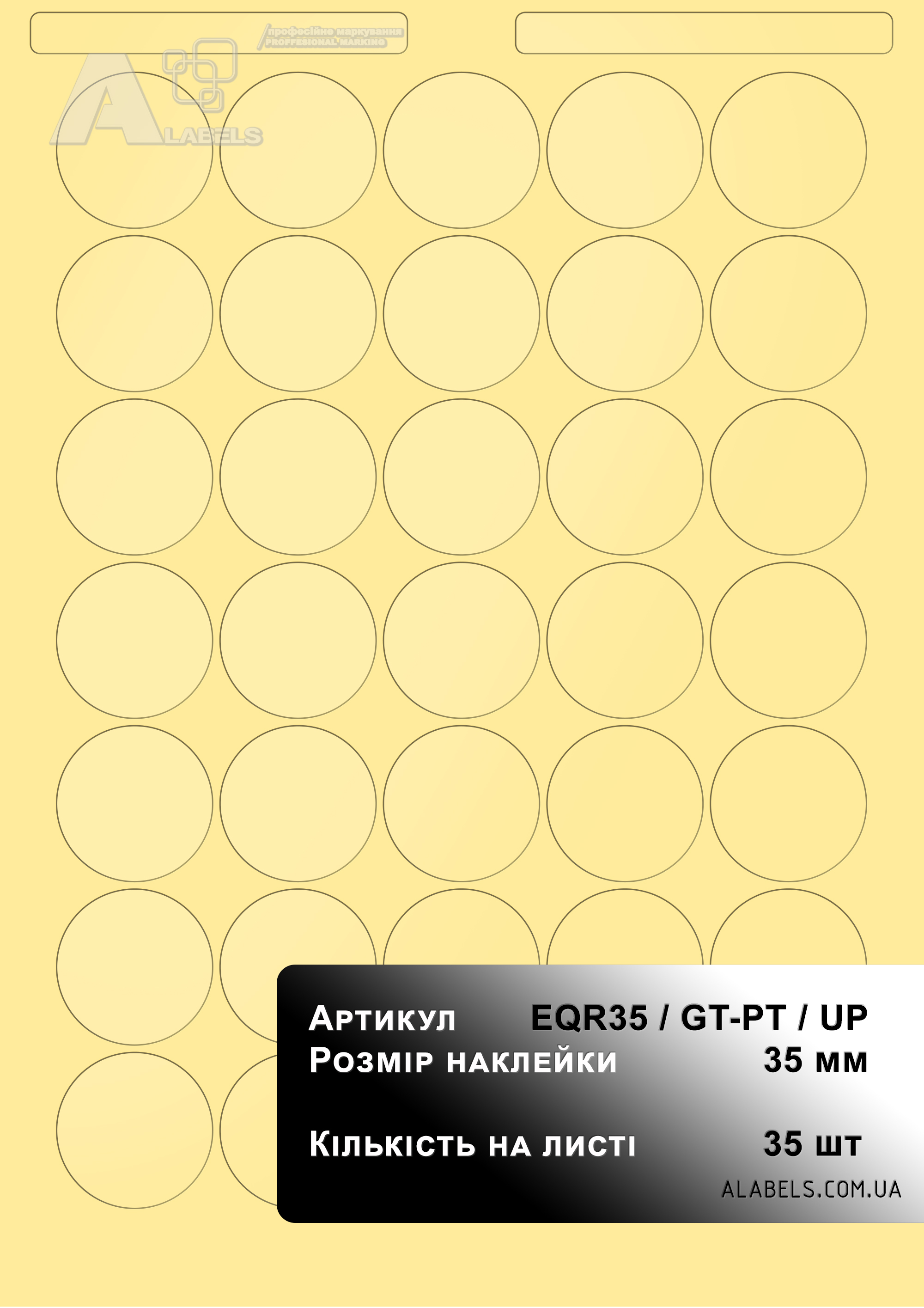 Размеры(в x д): 35мм x 35мм Область для надписи 0мм x 0мм Формат листа: А4 Количество на листе 35 Материал: Винил Форма: Круг Цвет фона: Прозрачный Цвет надписи: -