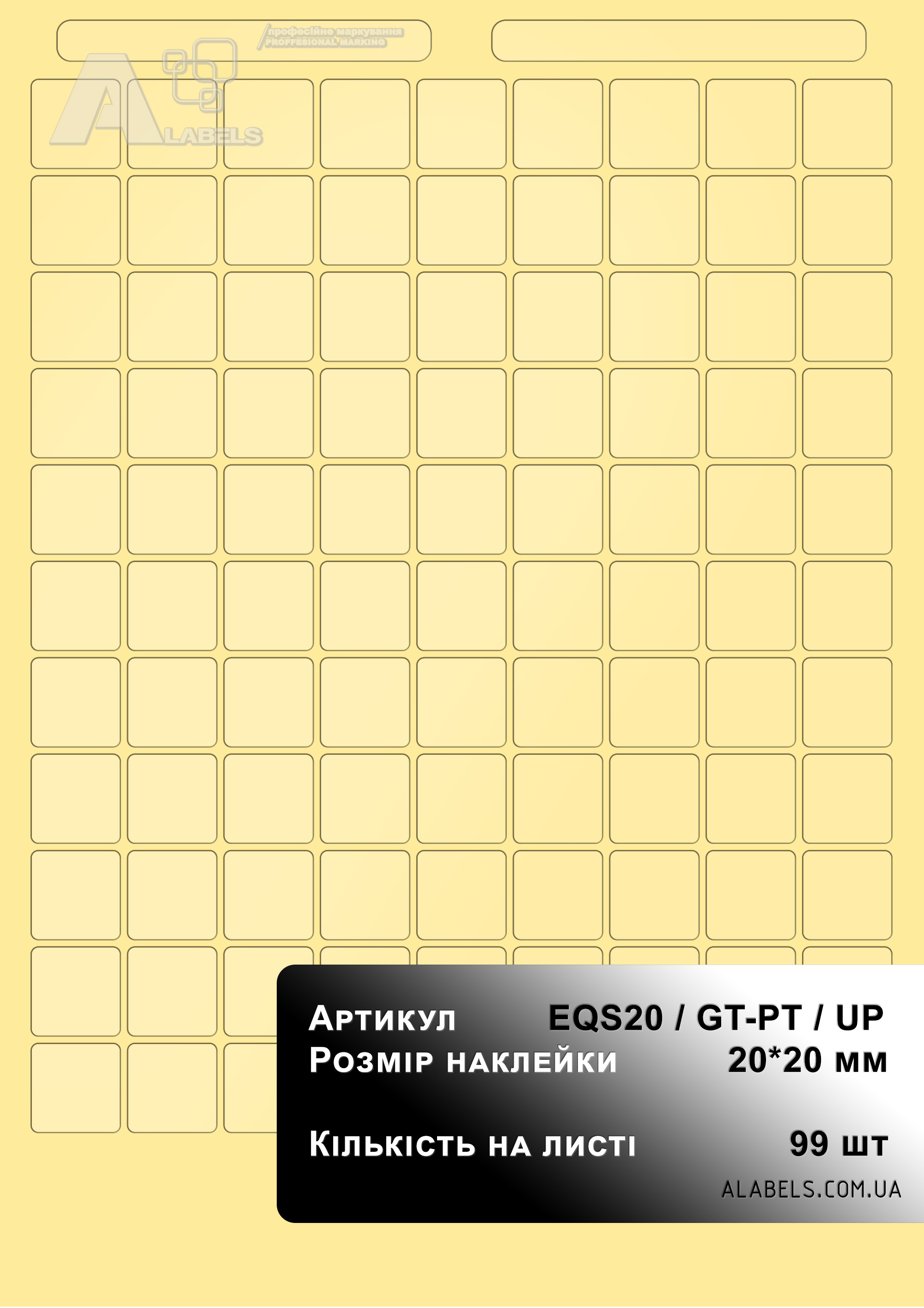Размеры(в x д): 20мм x 20мм Область для надписи 0мм x 0мм Формат листа: А4 Количество на листе 99 Материал: Винил Форма: Прямоугольник Цвет фона: Прозрачный Цвет надписи: -