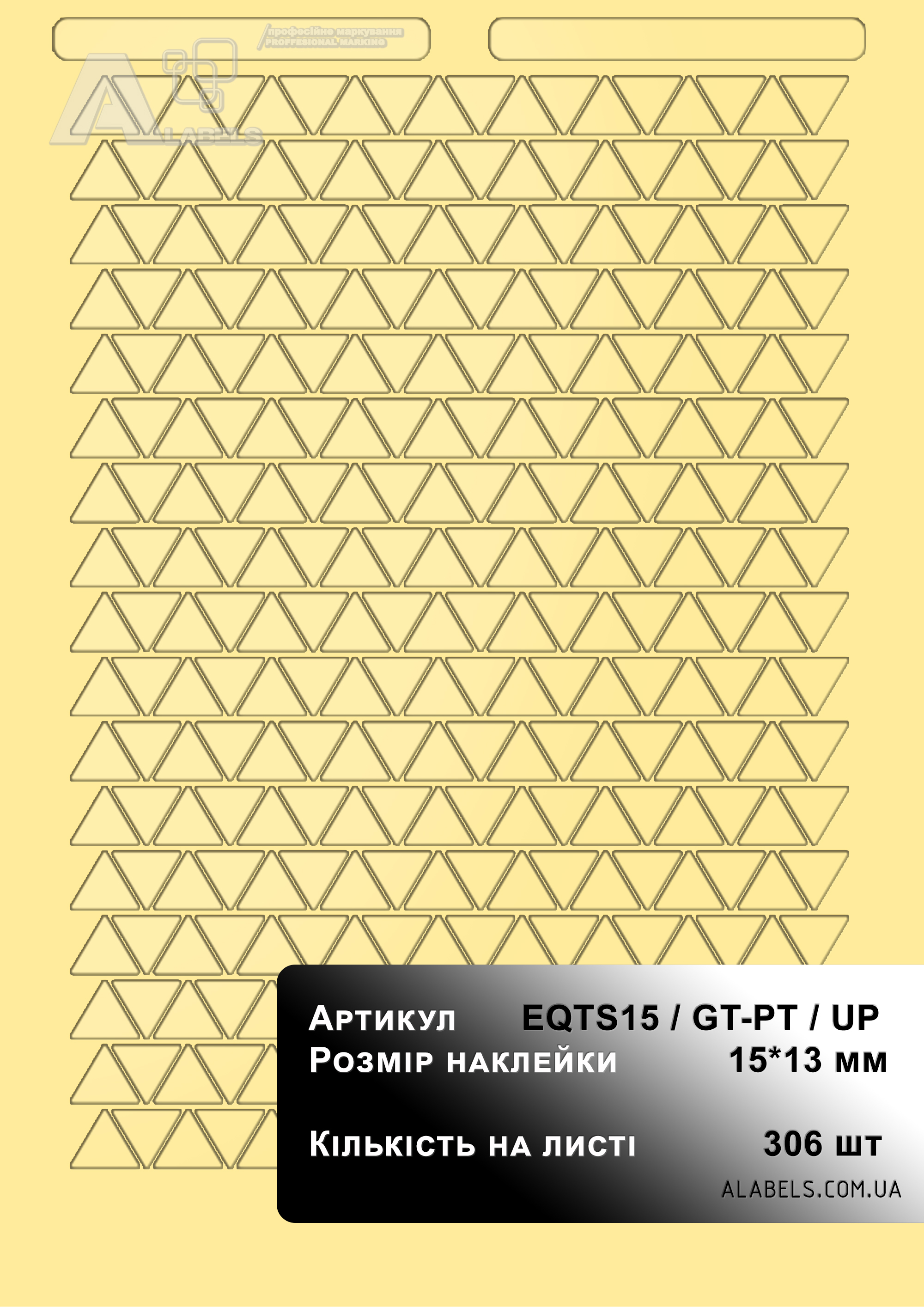 Размеры(в x д): 13мм x 15мм Область для надписи 0мм x 0мм Формат листа: А4 Количество на листе 306 Материал: Винил Форма: Треугольник Цвет фона: Прозрачный Цвет надписи: -