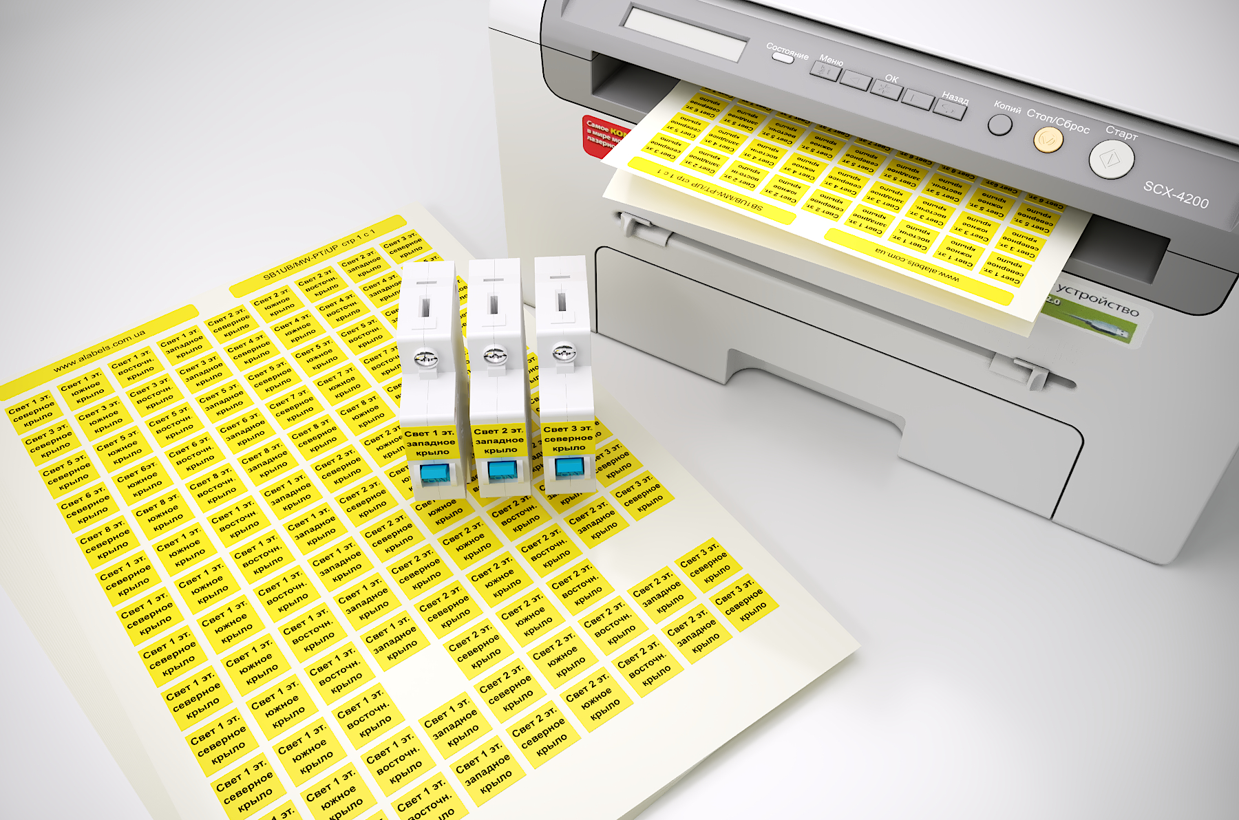 Наклейки желтые под печать на лазерном принтере для маркировки силовых автоматов в 1 U