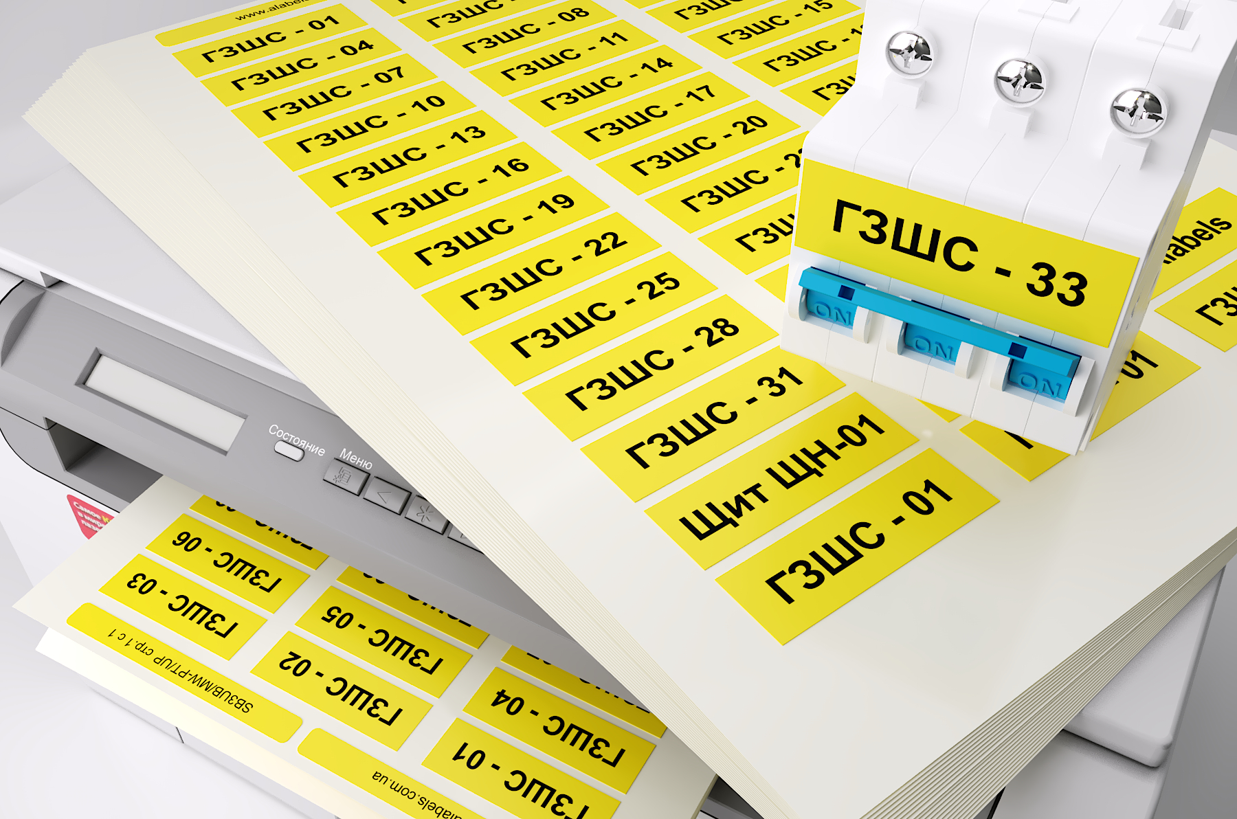 ГлавнаяНаклейки и бирки для маркировки СКС и энергетической сферыНаклейки для силовых автоматовНаклейки желтые под печать на лазерном принтере для маркировки силовых автоматов в 3 U