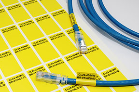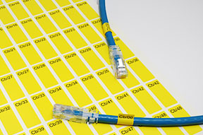 Кабельные наклейки жёлтого цвета для маркировки кабеля диаметром до 7мм, под печать лазерным принтером