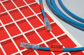 Наклейки красного цвета для маркировки информационного кабеля, патч-кордов c D от 3 до 7 мм., под печать на лазерном принтере