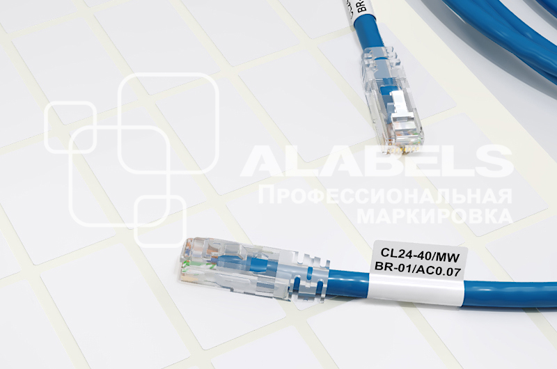 Самоламинирующиеся кабельные наклейки для маркировки кабеля, патч-кордов c D от 4 до 7 мм., под печать на лазерном принтере