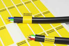 Наклейки желтого цвета для маркировки кабеля c D от 3 до 18 мм. или пучка кабелей, под печать на лазерном принтер
