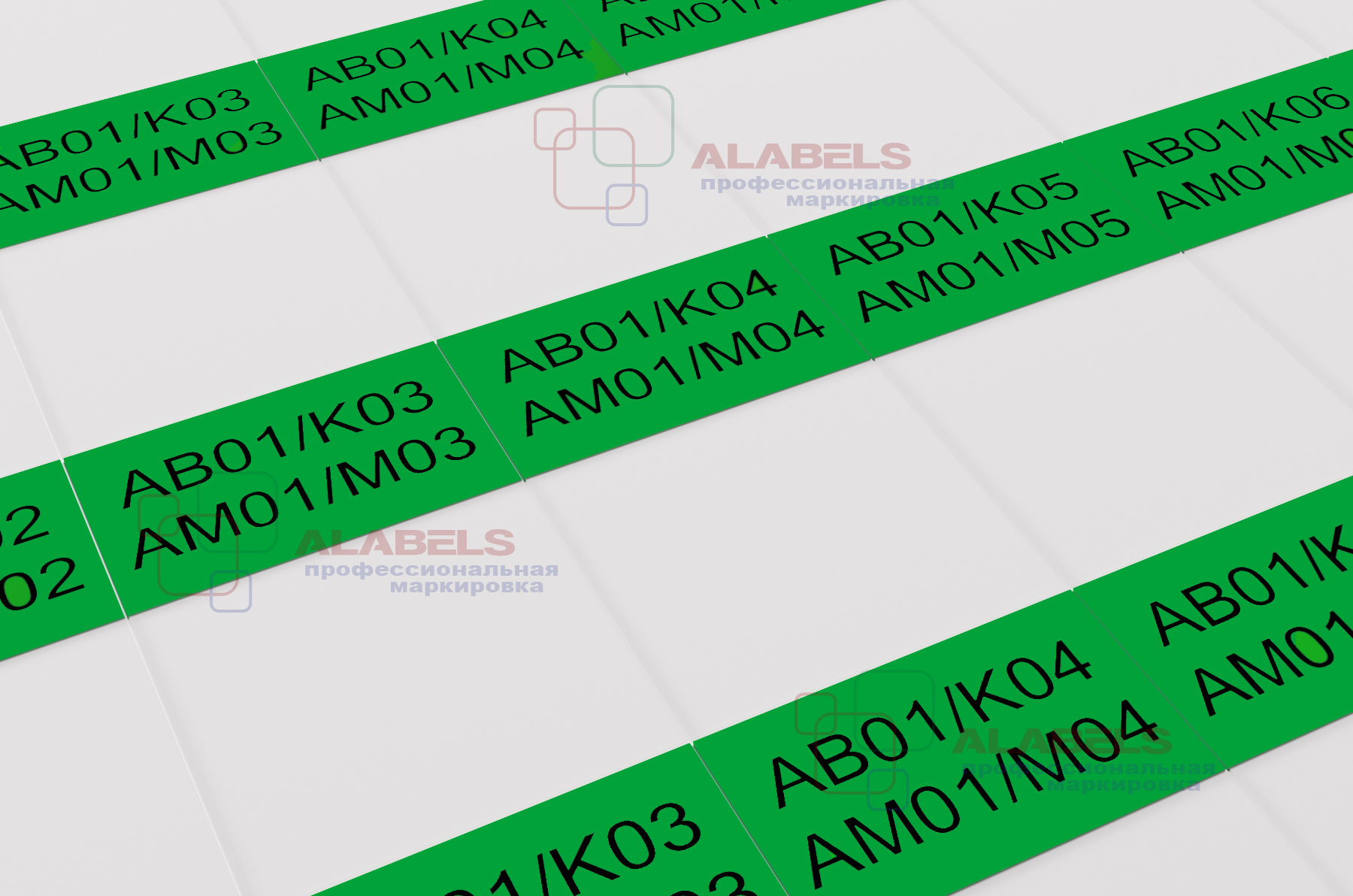 Самоламинирующиеся кабельные наклейки зеленого цвета для маркировки кабеля, патч-кордов c D от 4 до 7 мм., под печать на лазерном принтере