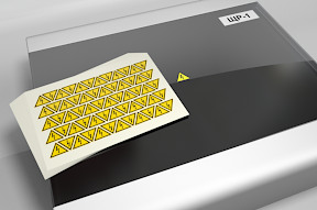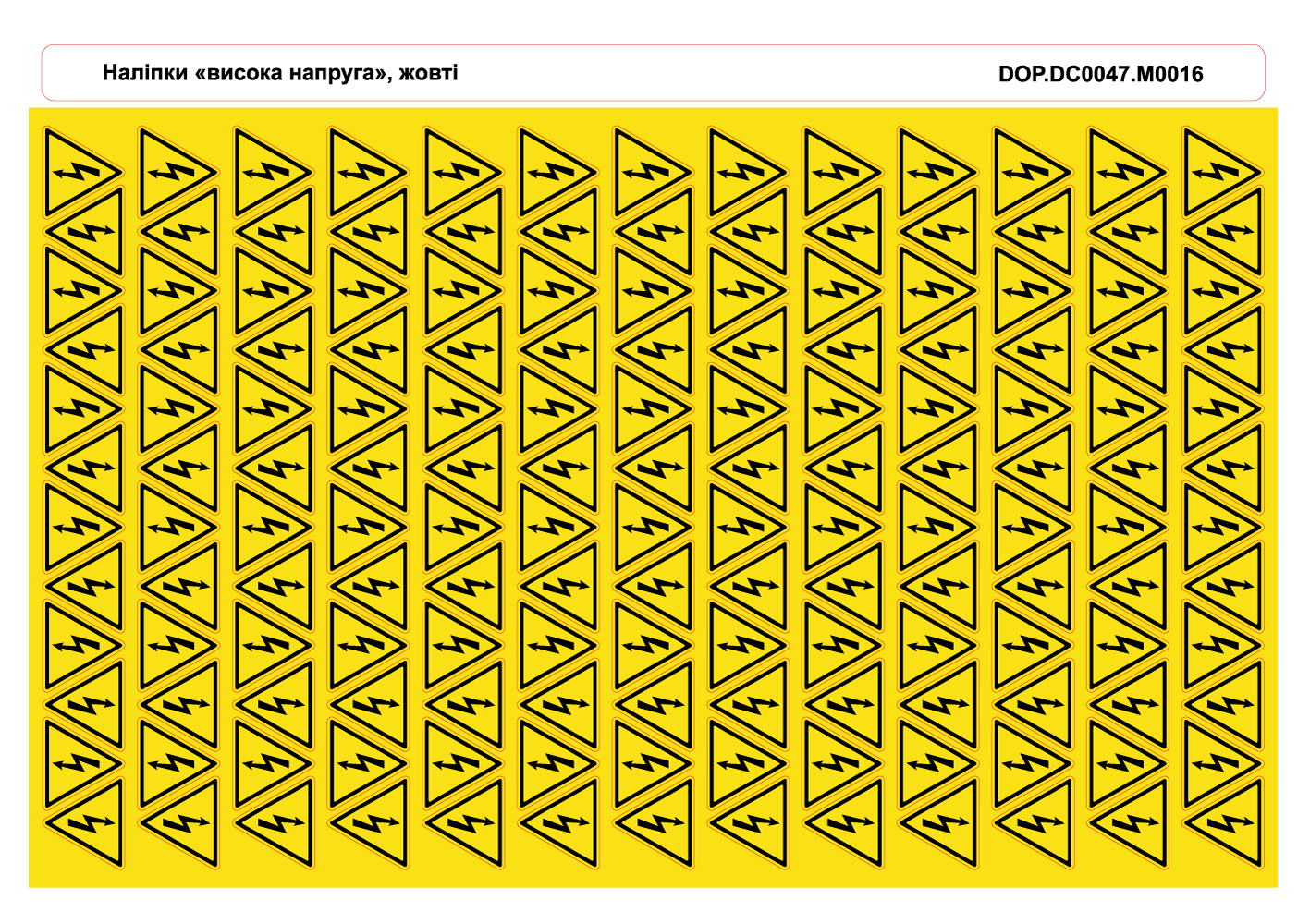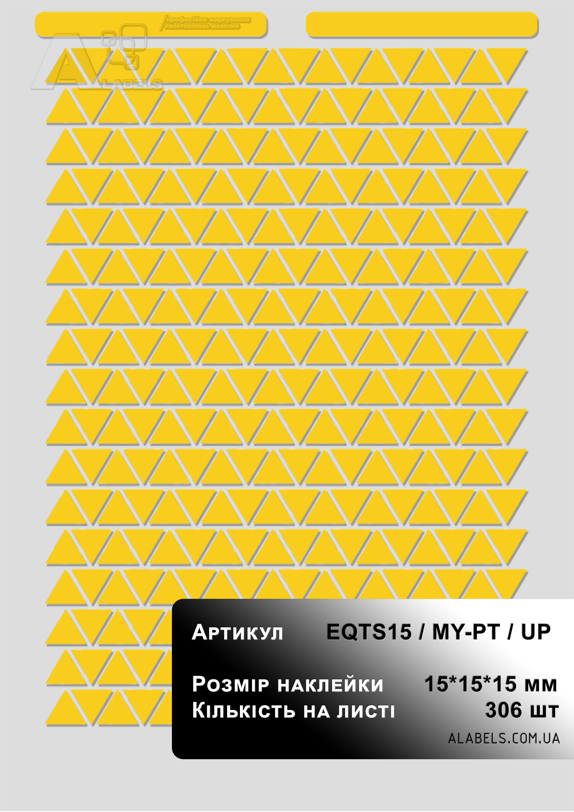 Наклейка информационная желтый треугольник 15*15*15мм под печать на принтере