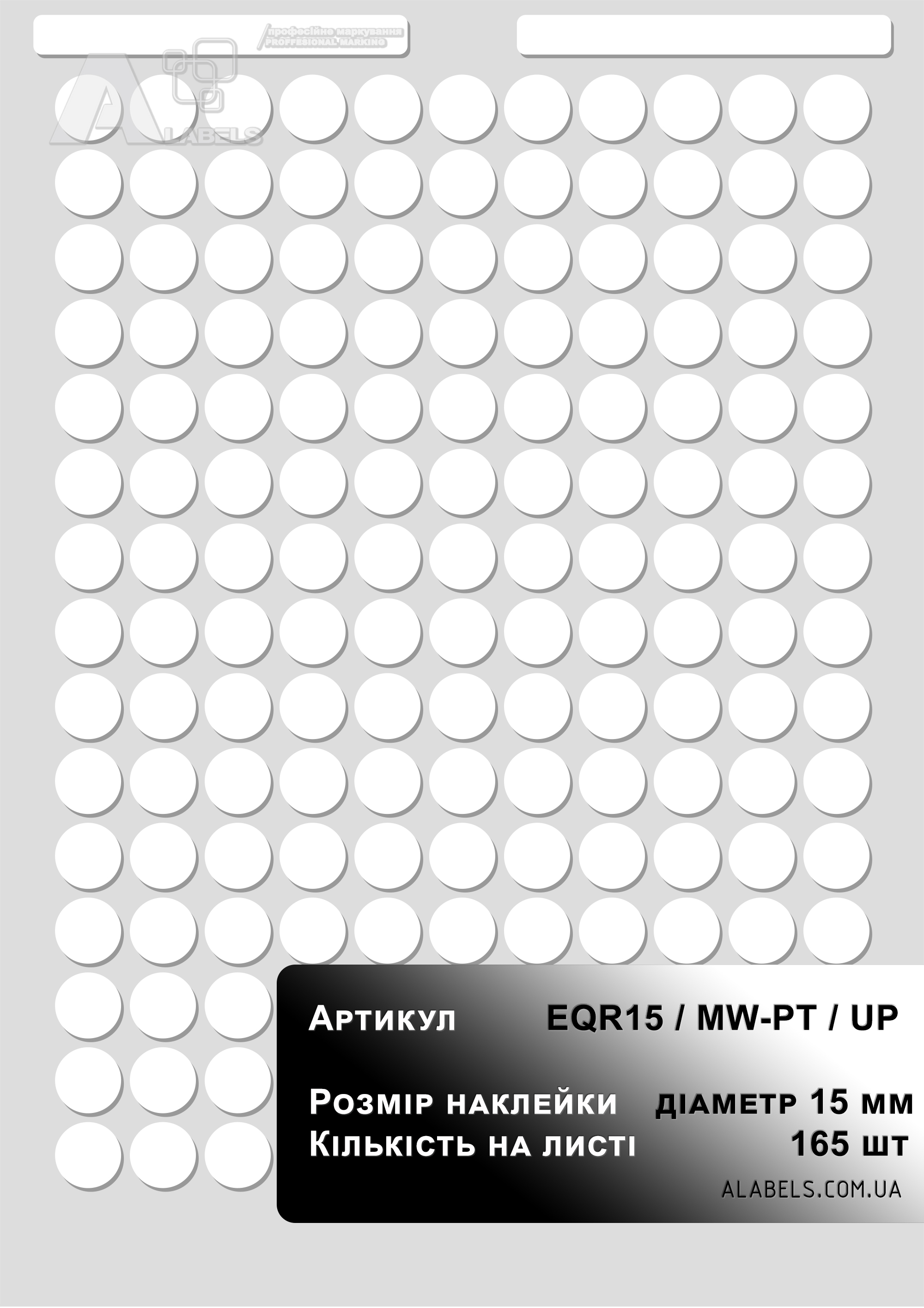 Размеры(в x д): 15мм x 15мм Область для надписи 0мм x 0мм Формат листа: Количество на листе 80 Материал: Винил Форма: Круг Цвет фона: Цвет надписи: -