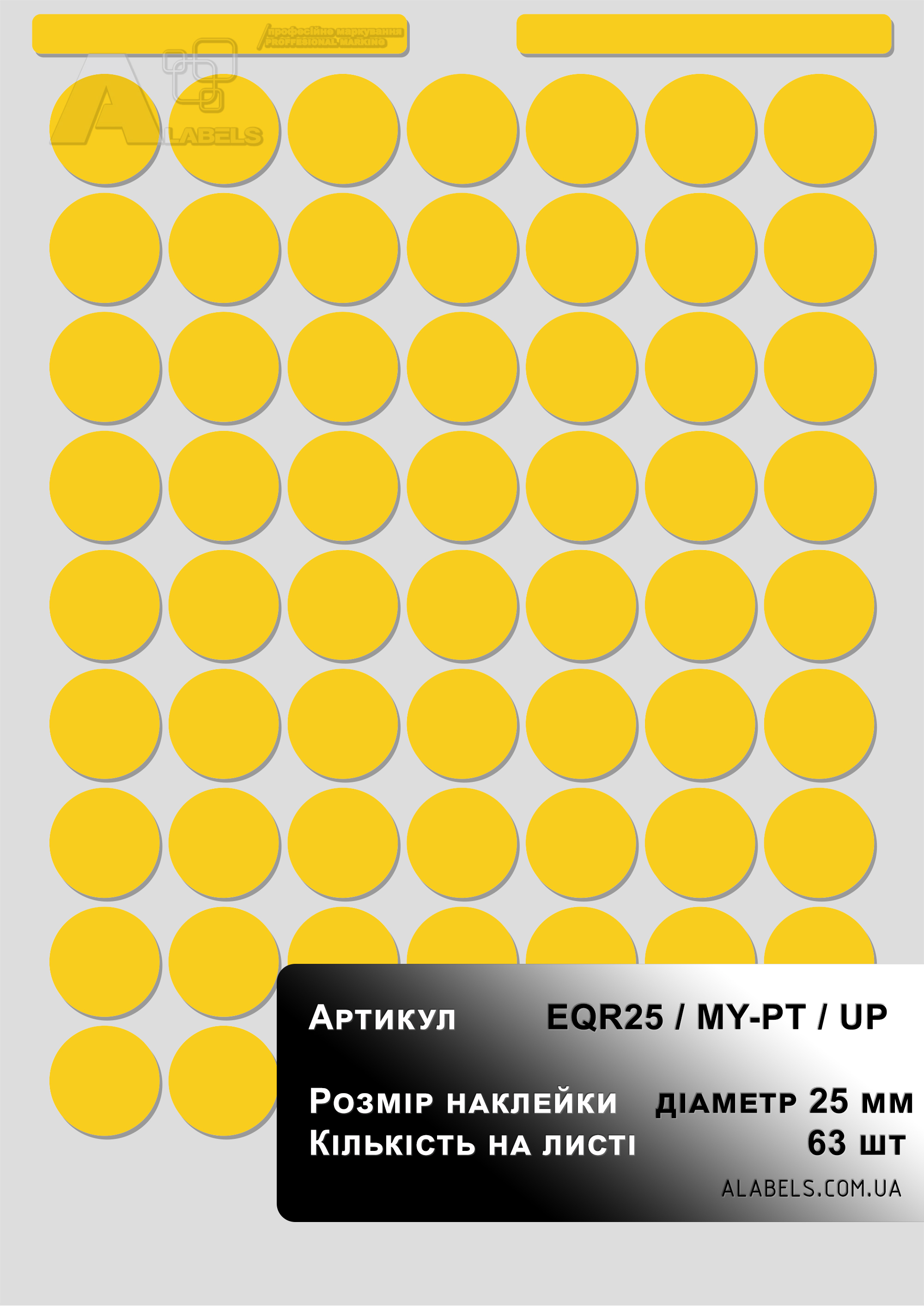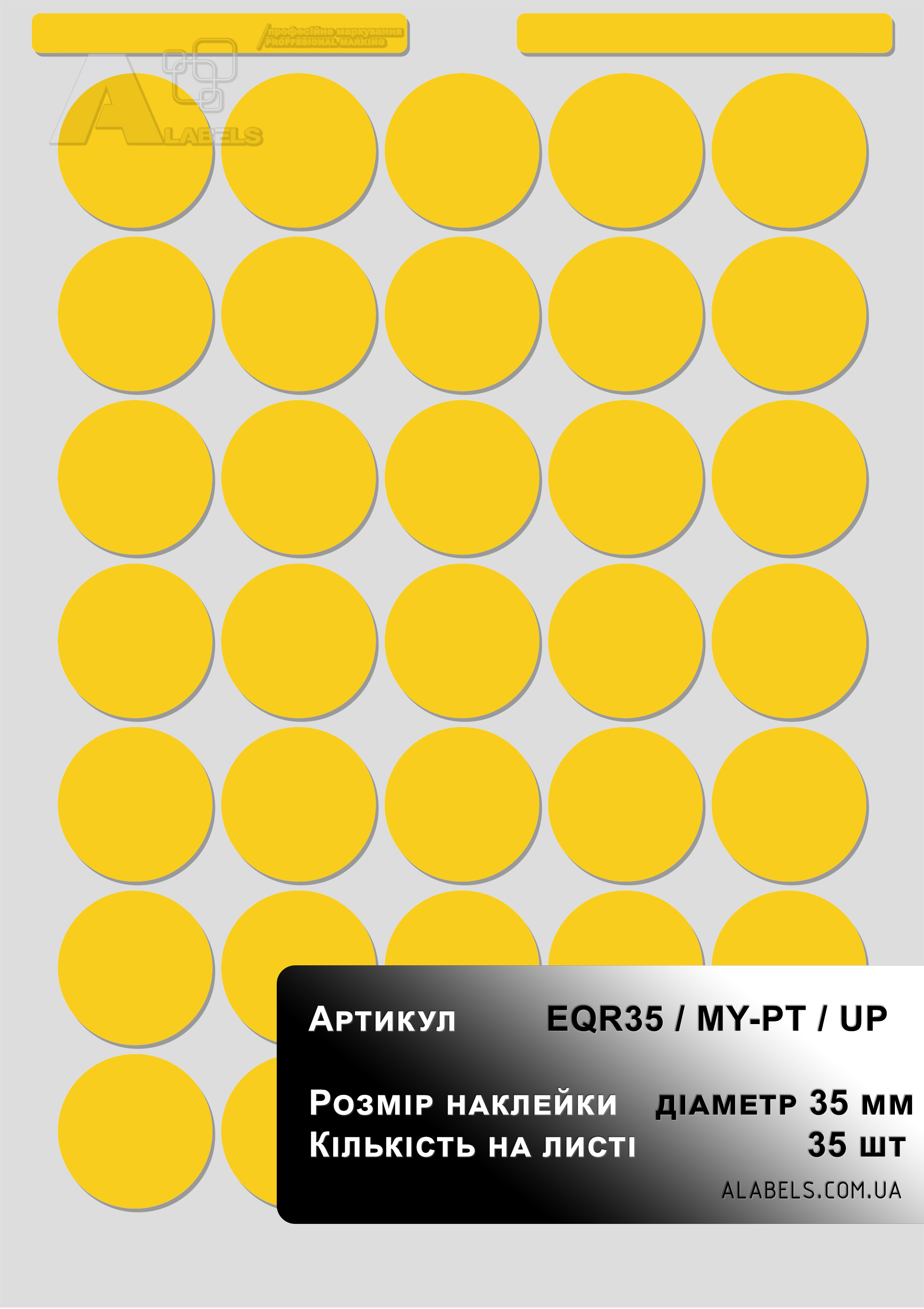 Размеры(в x д): 35мм x 35мм Область для надписи 0мм x 0мм Формат листа: Количество на листе 15 Материал: Винил Форма: Круг Цвет фона: желтый Цвет надписи: -