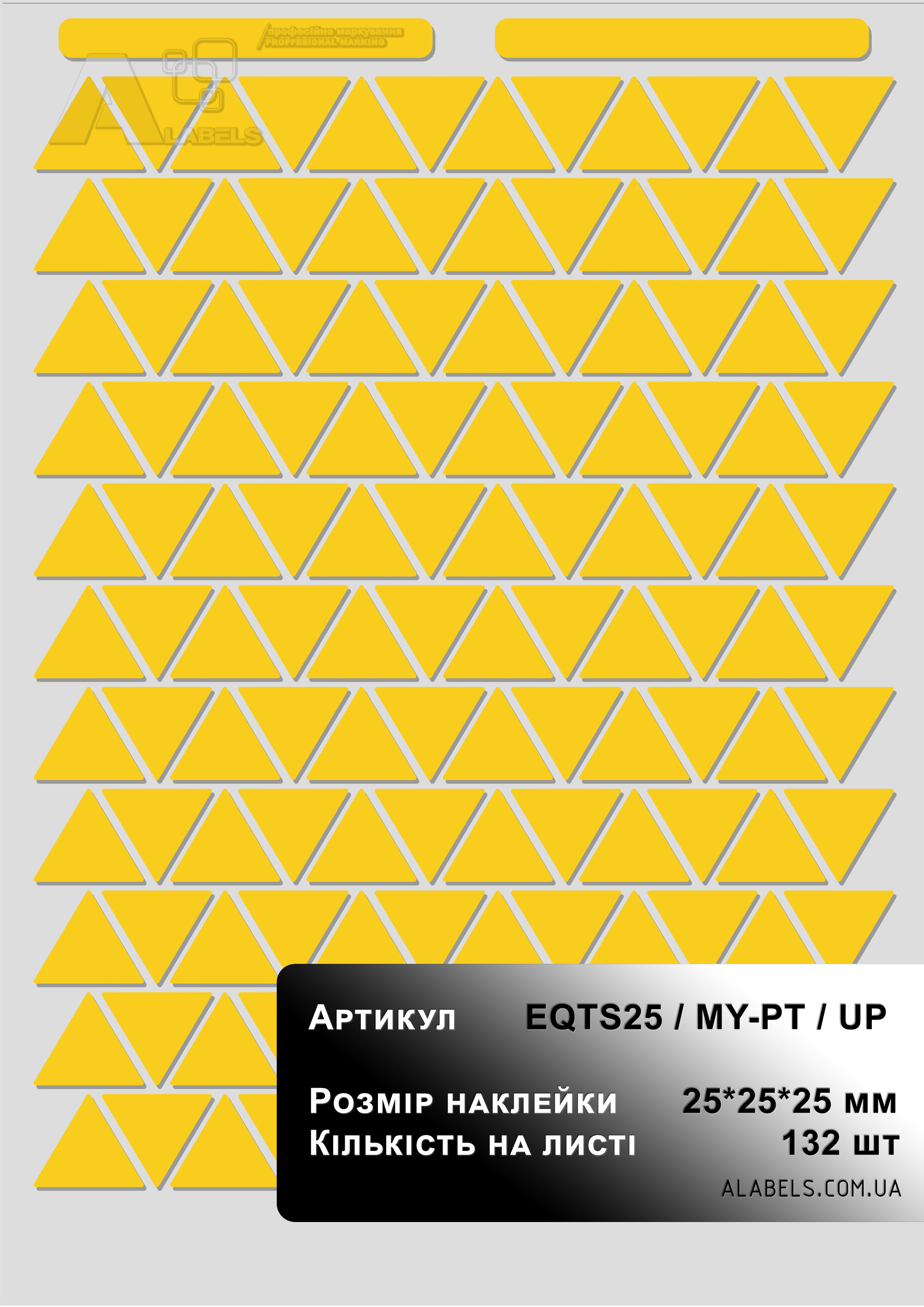 Наклейка информационная желтый треугольник 25*25*25мм под печать на принтере
