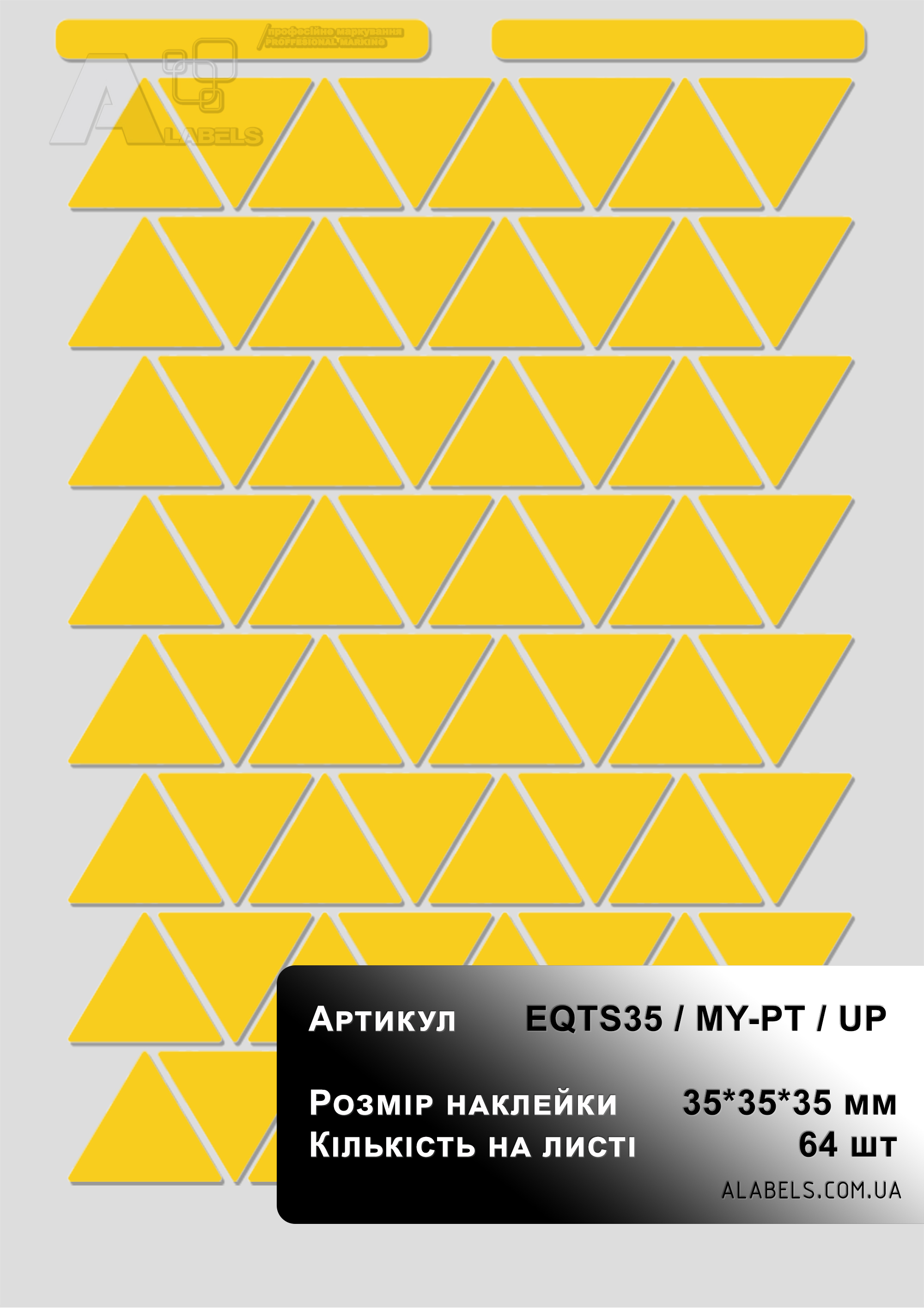 Наклейка информационная желтый треугольник 35*35*35мм под печать на принтере