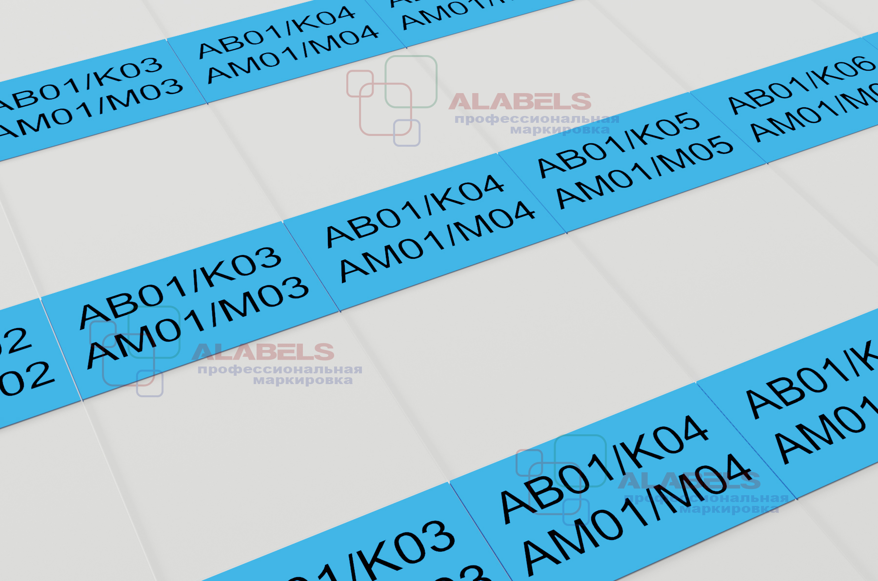 Самоламинирующиеся наклейки на кабель относятся к основным элементам финишной или технологичной маркировки кабельных магистралей, используемых при построении многофункциональных СКС. Маркеры на кабель предложенного типа применяются для обозначения информационных и силовых кабелей и патчкордов, величина внешнего диаметра которых составляет от 4 мм до 7 мм. Отличительной чертой предложенной продукции является то, что наклейки на кабель этого типа имеют исполнение в синем цвете. Это позволяет получить еще один дополнительный уровень кодирования кабельных сетей: в тех коммутационных местах, где бывает недостаточно обозначать кабели только буквенно-цифровой или графической записью, а необходимо еще цветовое кодирование.. В соответствии со стандартом «TIA/EIA-606-A», в котором закреплены основные аспекты цветовой идентификации элементов СКС, синие кабельные стикера применяются для маркировки горизонтальных подсистем кабельных магистралей.