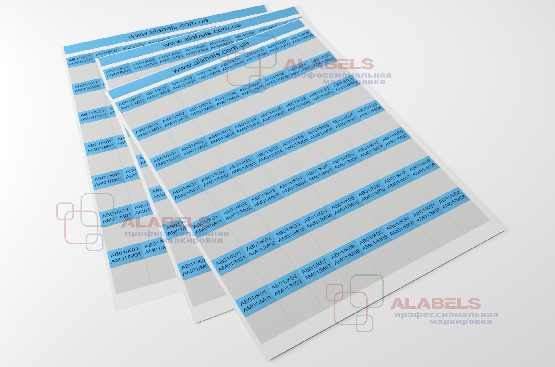 Самоламинирующиеся кабельные наклейки для маркировки кабеля, патч-кордов c D от 4 до 7 мм., под печать на лазерном принтере